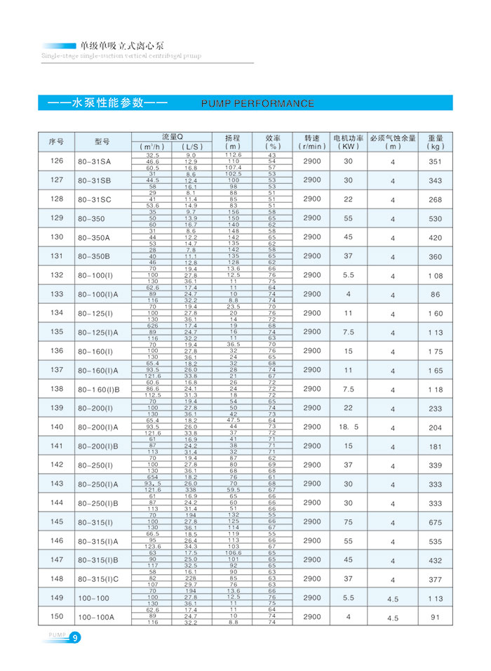 流量範(fan)圍1.5~1200m7h,揚程(cheng)範圍8-150m,分(fèn)基本型(xing)、擴流型(xíng),A,B,C切割型(xing)等250多🥵種(zhǒng)規格。根(gen)據流量(liàng)介質和(he)溫度不(bu)同,設計(ji)制造成(chéng)同性能(néng)👄參數💛的(de)熱水泵(beng)、化工泵(beng)、油泵和(hé)防爆化(hua)工泵系(xì)列産品(pin)。