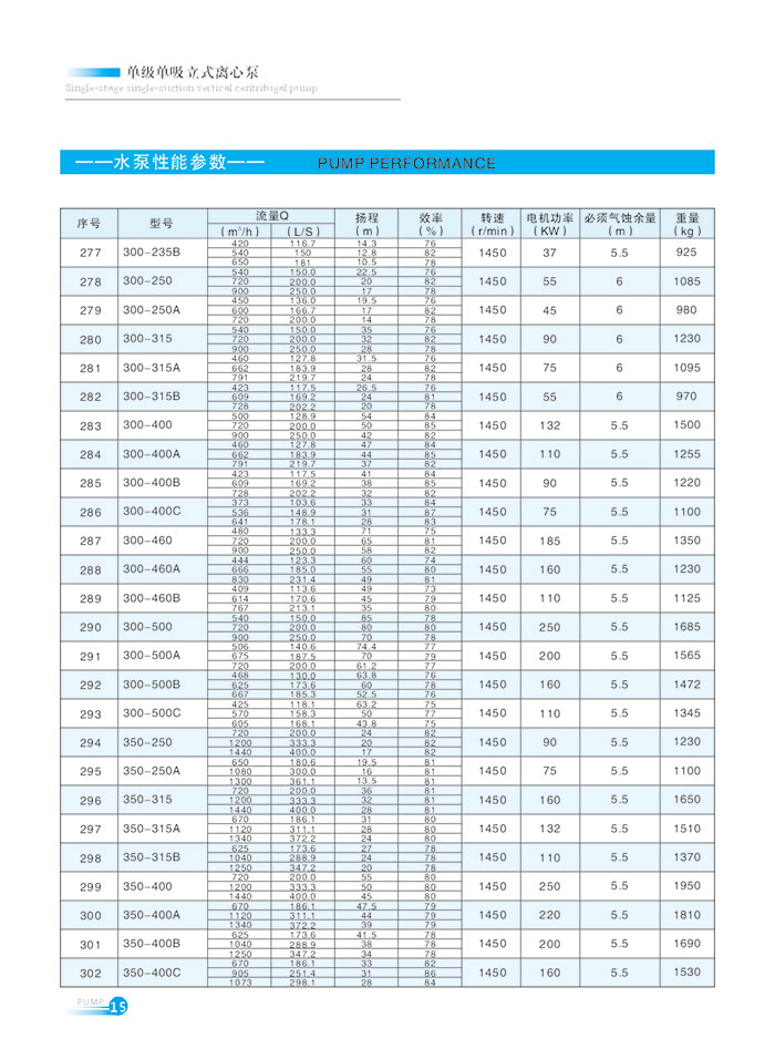 流量(liang)範圍1.5~1200m7h,揚(yang)程範圍(wéi)8-150m,分基本(ben)型、擴流(liú)型,A,B,C切割(ge)型等250多(duō)種規格(ge)💃🏻。根據流(liu)量介質(zhì)和溫度(du)不同,設(shè)計制造(zào)成同🔞性(xìng)能參數(shù)的熱水(shui)泵、化工(gōng)泵、油泵(beng)和防爆(bao)化工泵(beng)系列産(chǎn)品。